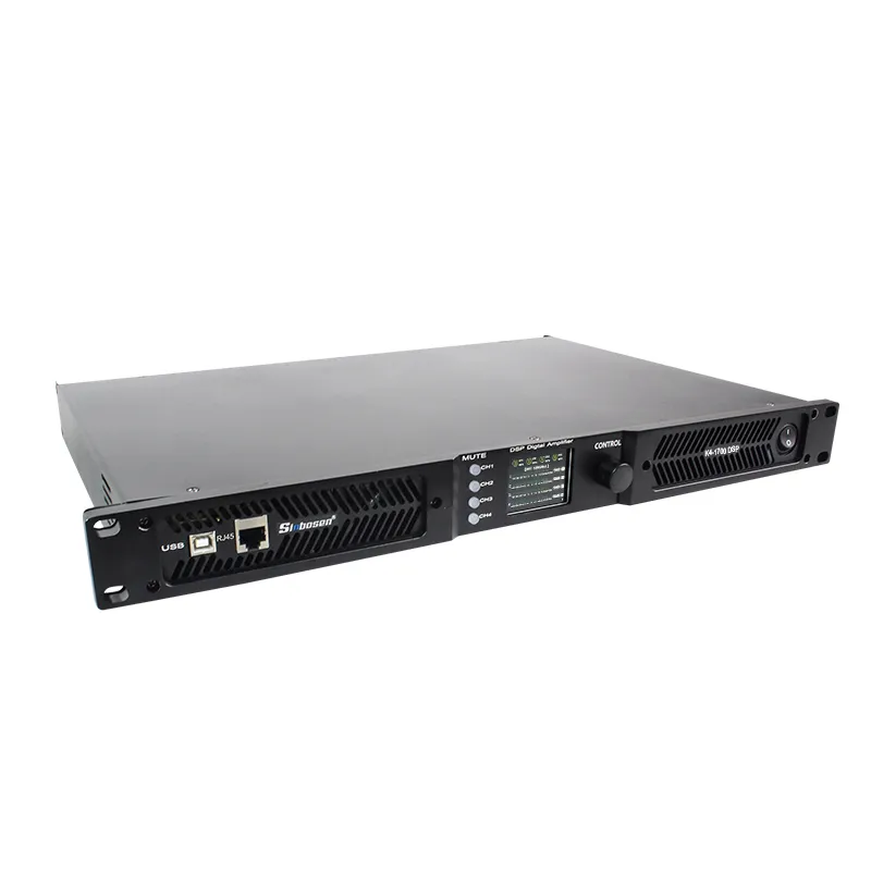 Model: K4-1700 DSP Kanal: 4 kanal güç amplifikatörü Özellik: 1U/Dijital Amp/4CH/Sınıf D/DSP Fonksiyonu Çıkış Gücü: 8Ω Stereo Güç (RMS): 1700WX4CH 4Ω Stereo Güç (RMS): 2800WX4CH Sertifika: CE, ROHS