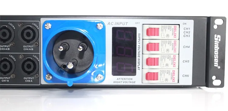 7. Koruma fonksiyonu: Her kanal bağımsız bir hava anahtarı ile donatılmıştır. Kısa devre veya aşırı akım durumunda, ses ekipmanını hasardan korumak için hava anahtarı otomatik olarak kapanır.